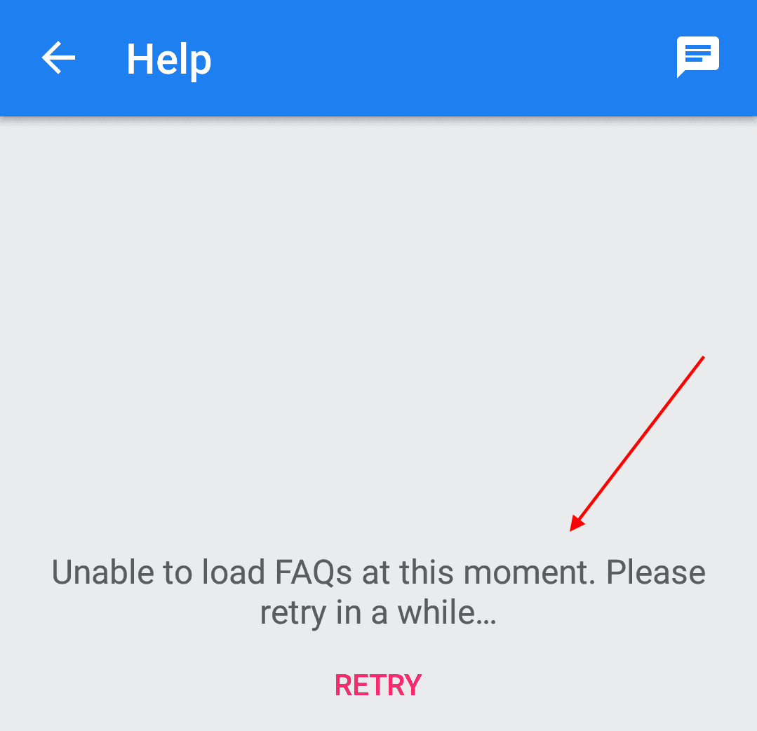 hs__faq_fetching_fail_message | Text shown in the activity when app fails to fetch FAQs from server ![]() | Unable to load FAQs at this moment. Please retry in a while… |